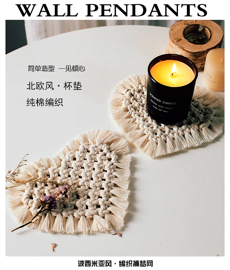 Коврики для чашек в скандинавском стиле, хлопковая веревка, макраме...