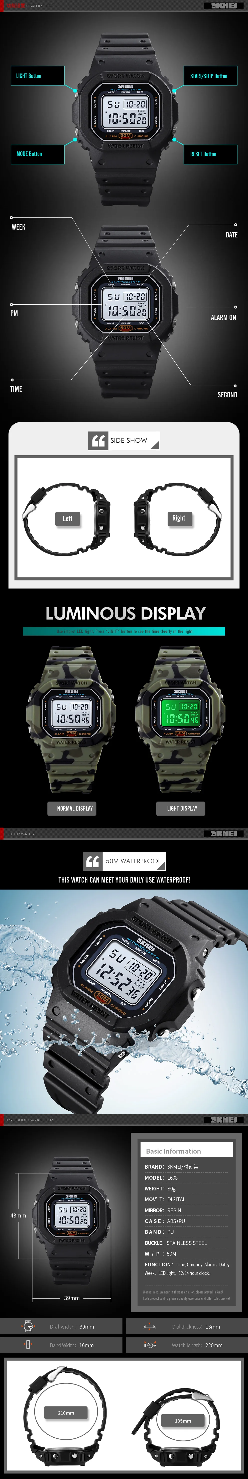Часы наручные SKMEI Мужские Цифровые, спортивные водонепроницаемые ...