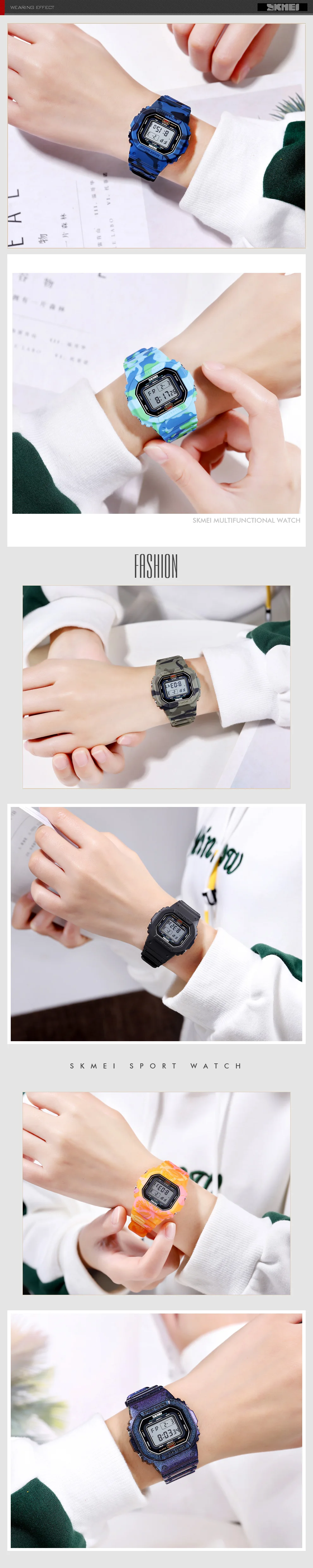 Детские цифровые наручные часы SKMEI, водонепроницаемые, 50 м, с ка...