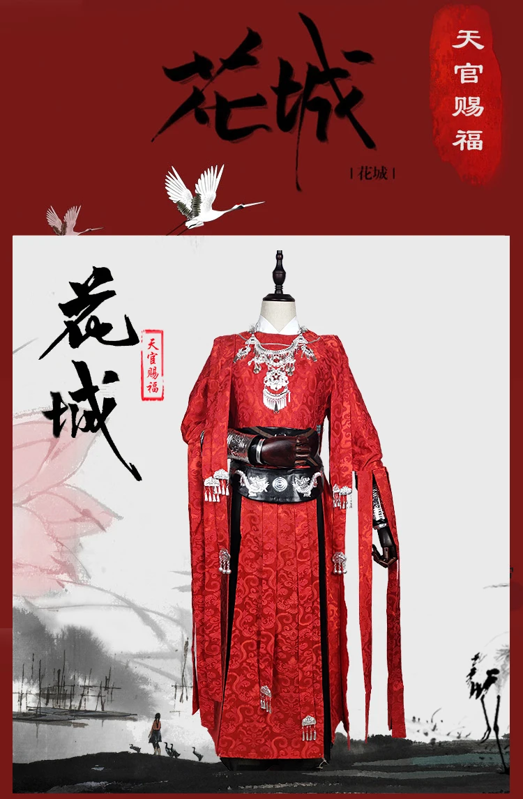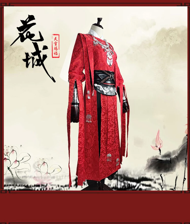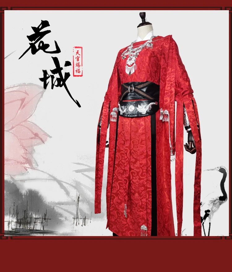 Костюм для косплея Tian Guan Ci Fu, отчаянный призрачный король Хуа Чэн, черный длинный костюм с плащом