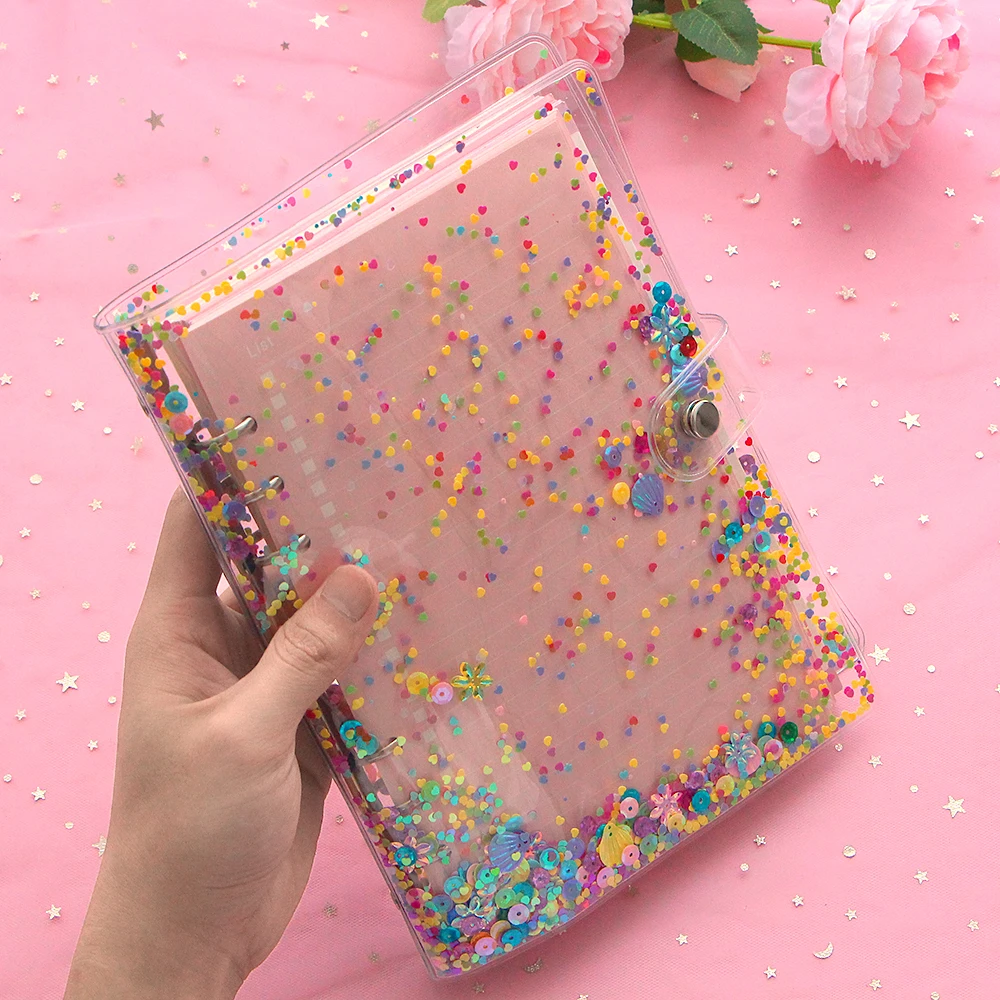 Чехол для ноутбука A5 A6 Kawaii, чехол для планировщика, блестящий зыбучий песок, 6 отверстий, папка, простой чехол для дневника, канцелярские принадлежности