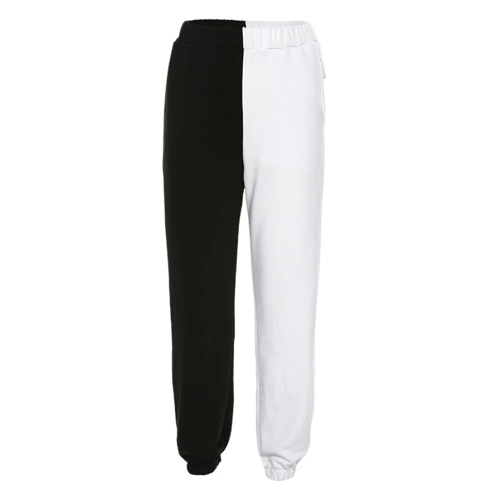 Женские шаровары с высокой талией, черно-белые повседневные свободные штаны в стиле пэчворк, уличная одежда для осени и зимы, 2019