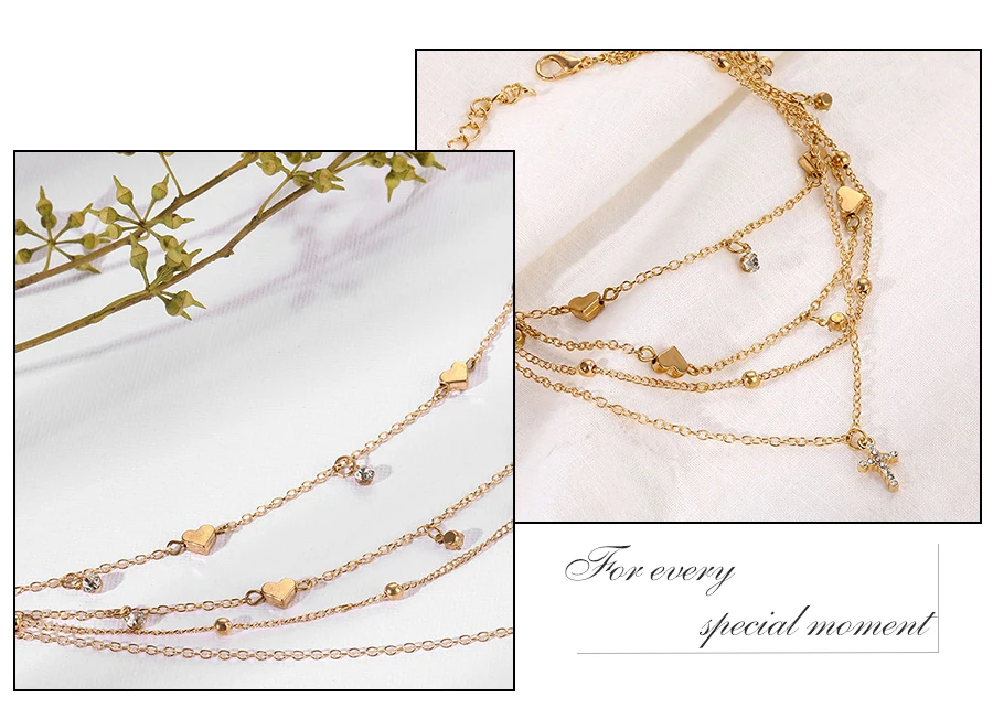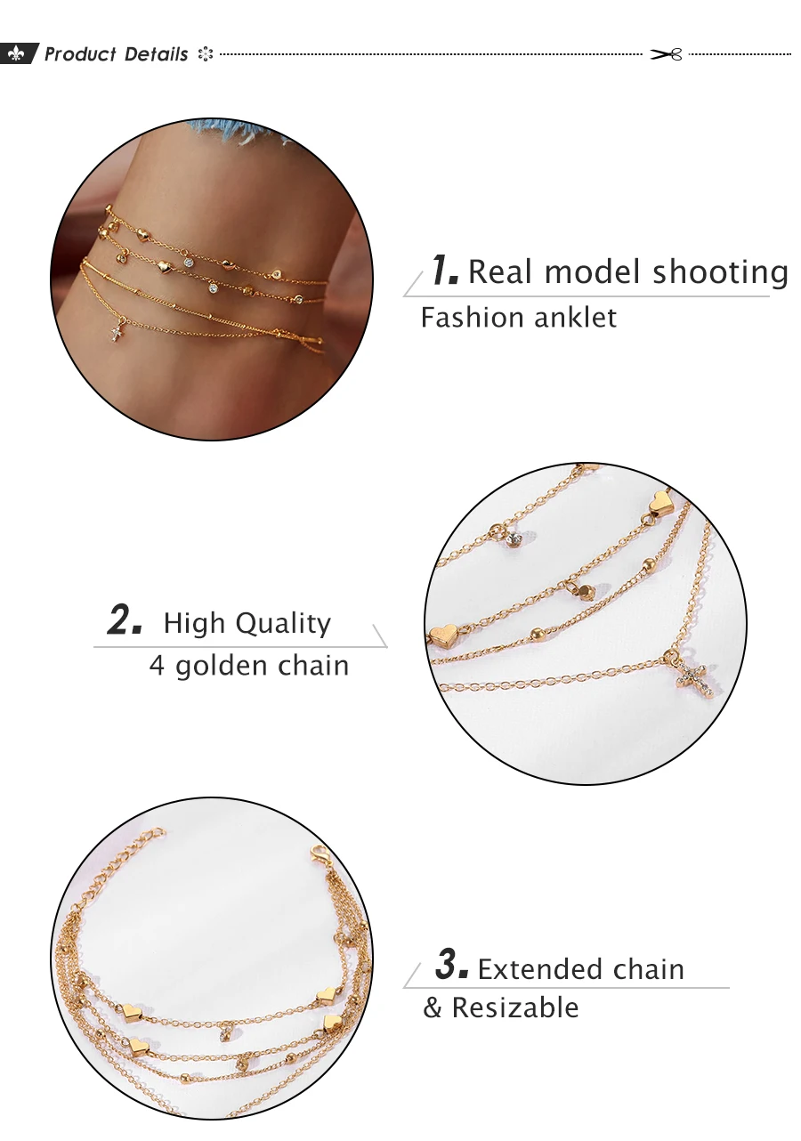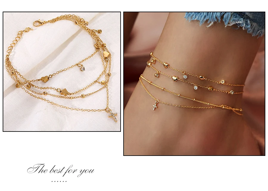 Браслет на ногу женский многослойный гипоаллергенный из сплава