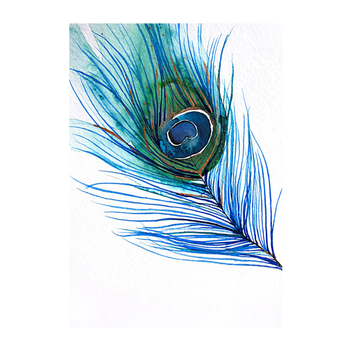 Акварельная картина с павлином, зеленым и синим перьями, постер на холсте, картина, настенное искусство, украшение для гостиной и дома