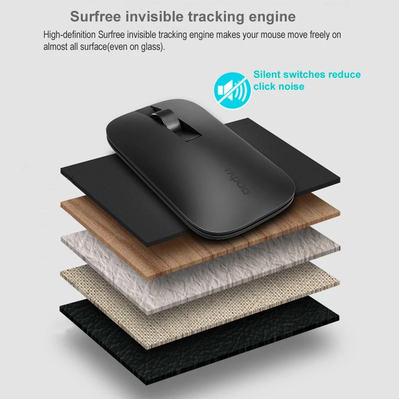 Новый бренд Rapoo, тонкая Бесшумная беспроводная мышь, переключение между Bluetooth 3,0/4,0 и 2,4G для Windows, ноутбука, ПК, мыши с одной клавишей, переключение 3 устройств
