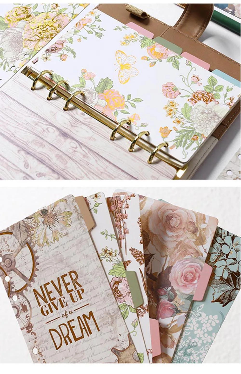 5 шт. винтажный цветочный Kawaii A5 A6, спиральный разделитель инде...