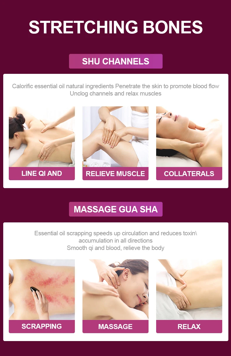 Нанесите правильный светильник и Расслабляющее массажное масло, равномерно нанесите на кожу спины, массируйте с помощью профессиональных методов до впитывания.