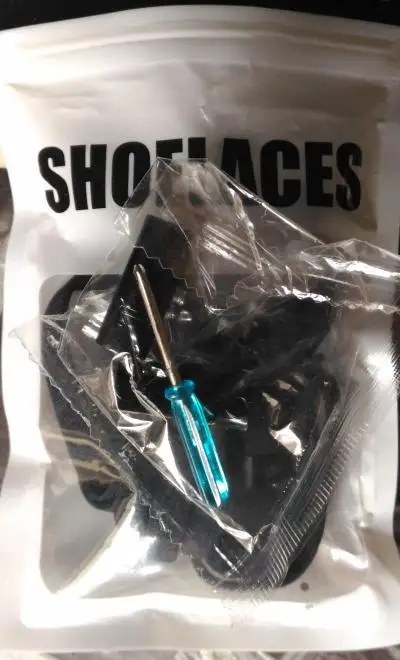 Продавец отправил быстро, пришёл в СПб через три недели. Совпадает с описанием. В наборе шнурки, магнитные замки, винтики и маленькая крестовая отвертка.