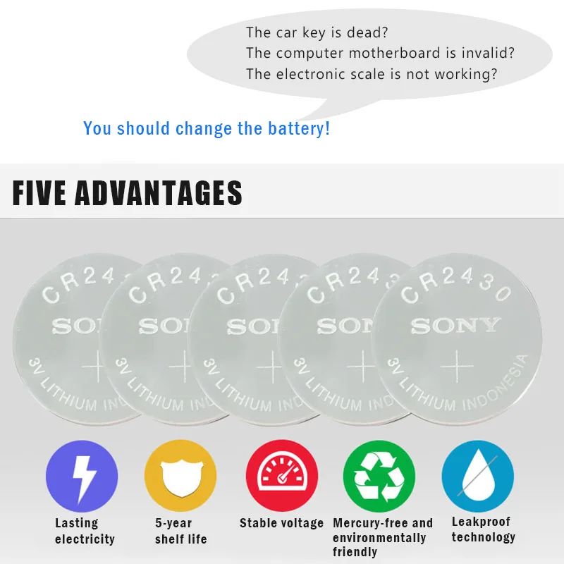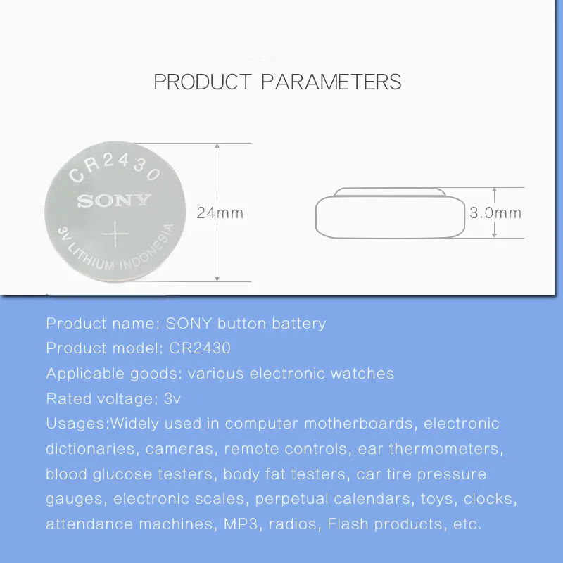 2 шт./лот SONY оригинальный CR2430 кнопочный элемент CR 2430 3V литиевые батареи для мобильного часо-удаленный компьютер калькулятор управление слуховой аппарат