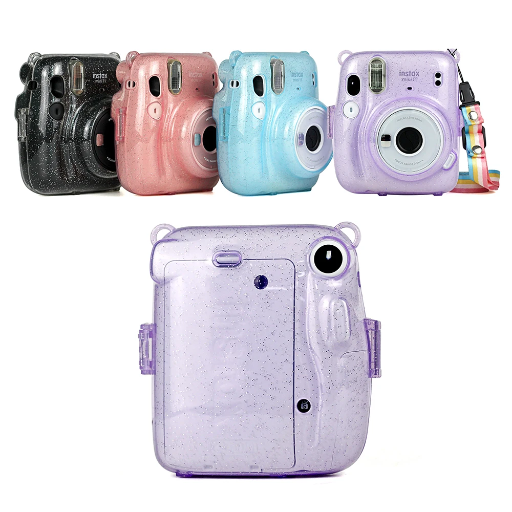 Для Fujifilm Instax Mini 11 сумка для камеры с мгновенной пленкой кристально жесткий чехол с блестящим покрытием чехол с плечевым ремнем Розовый Фиолетовый Синий