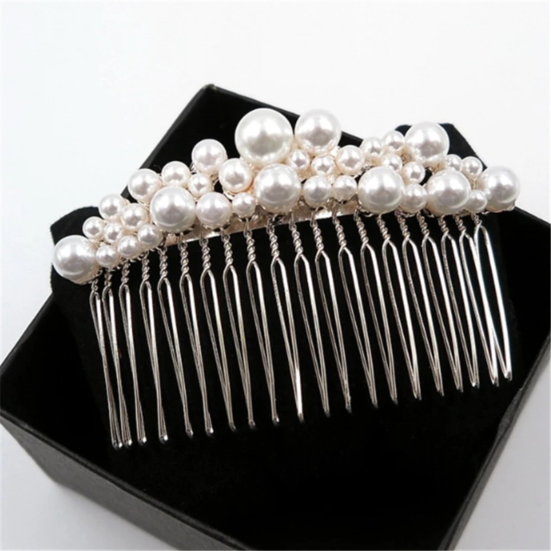 Свадебный гребень для волос серебристого цвета с искусственным жемчугом и цветком, для девочек, украшения для волос, ювелирные изделия, свадебные аксессуары для волос, U-образные шпильки для волос
