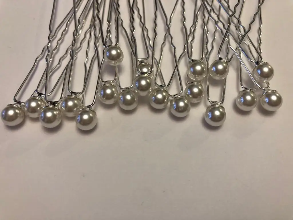 Гребень для волос с искусственным жемчугом, цветок серебристого цвета, для девочек, украшения для волос, ювелирные изделия, свадебные аксессуары для волос, U-образные заколки