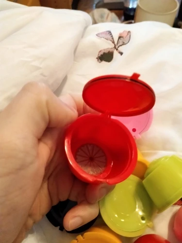 все супер, цветные капсулы из толстого пластика, закрываются плотно