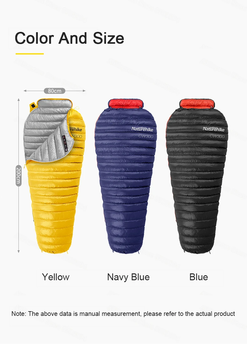 Спальный мешок Naturehike CW300 с гусиным пухом, ультралегкий, 0,63 кг, спальный мешок для мам, зимний, теплый, портативный, для кемпинга, путешествий