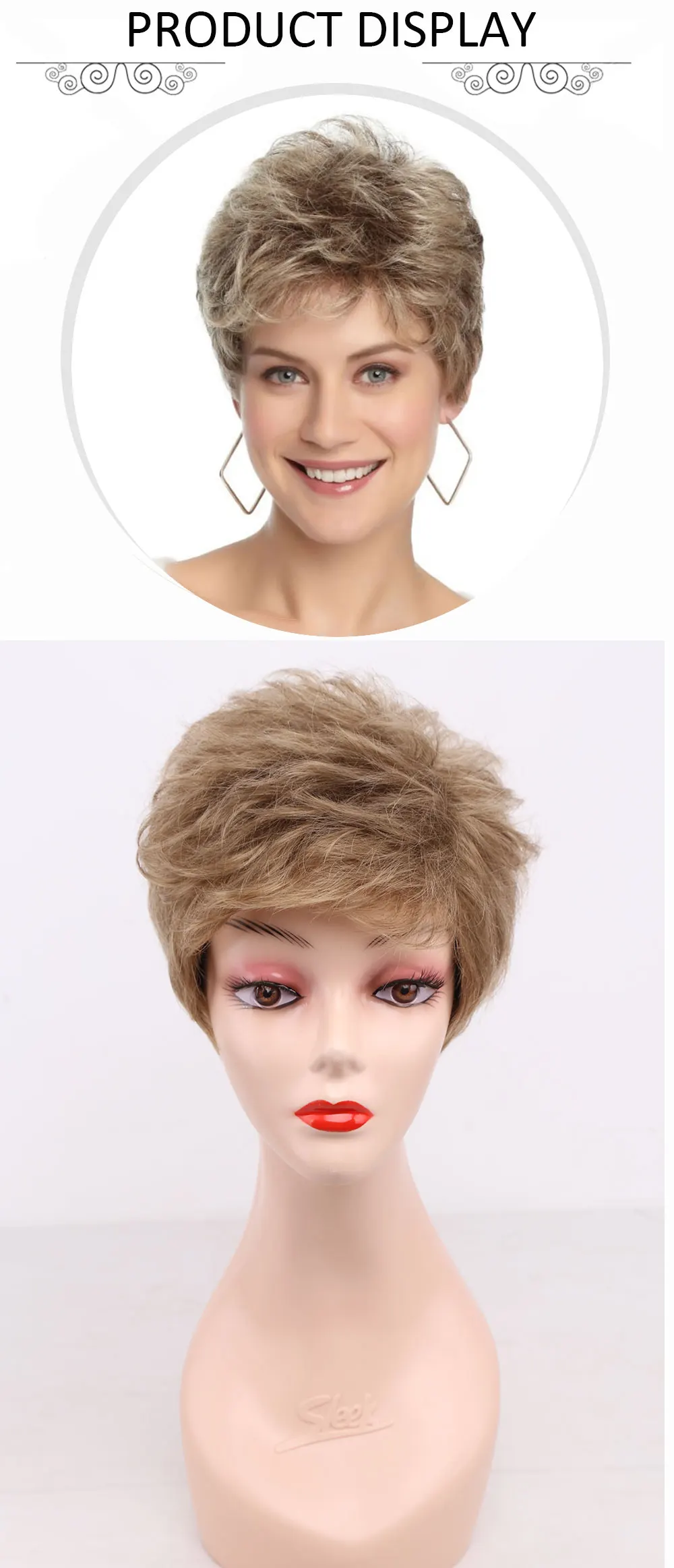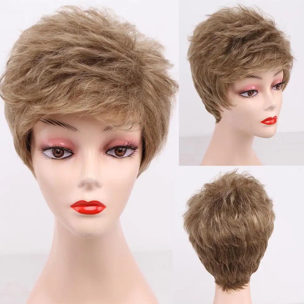Синтетический Классический короткий кудрявый натуральный блонд кашт...