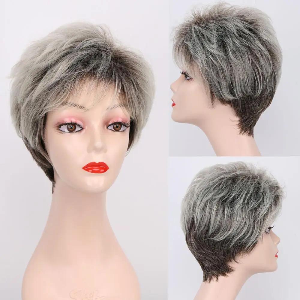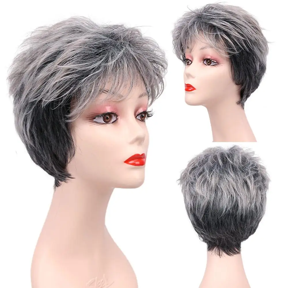 Синтетические волосы, термостойкие черные и серые парики, Короткие ...