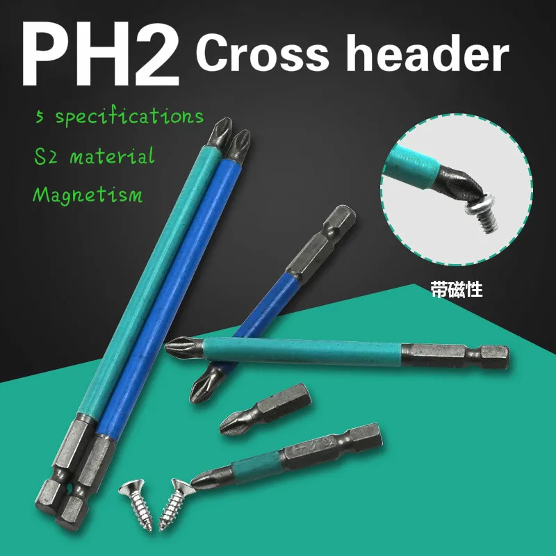 1 шт. S2 Магнитная противоскользящая отвертка с шестигранным хвостовиком 14 насадка для отвертки головка PH2 * 25 мм50 мм90 мм100 мм125 мм набор ручных инструментов