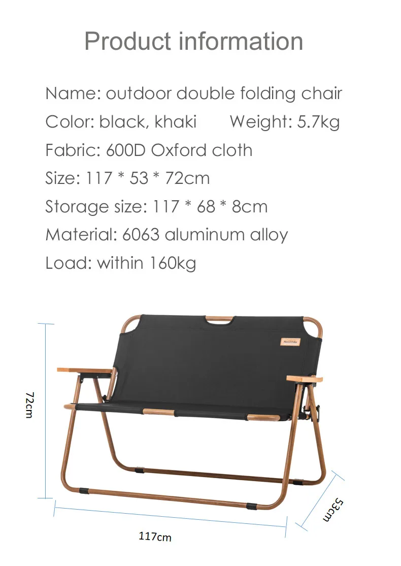 Naturehike складные столы и стулья для отдыха двойной спинка кресла Портативный песок пляжный 2 персоны деревянные кресла для отдыха на природе для пикника