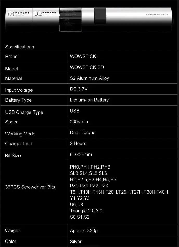 Максимальный крутящий моментWOWSTICK Screwdriver Set