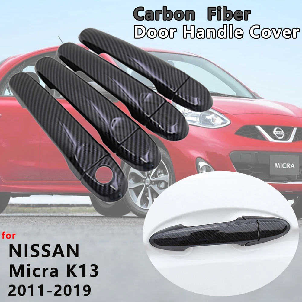 Черный глянец, углеродное волокно, дверная ручка, крышка, накладка, внешние автомобильные аксессуары для Nissan Micra K13 Renault Puls 2011 ~ 2019