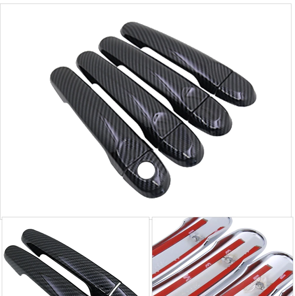 4 шт. глянцевый черный чехол из углеродного волокна для дверных руч...