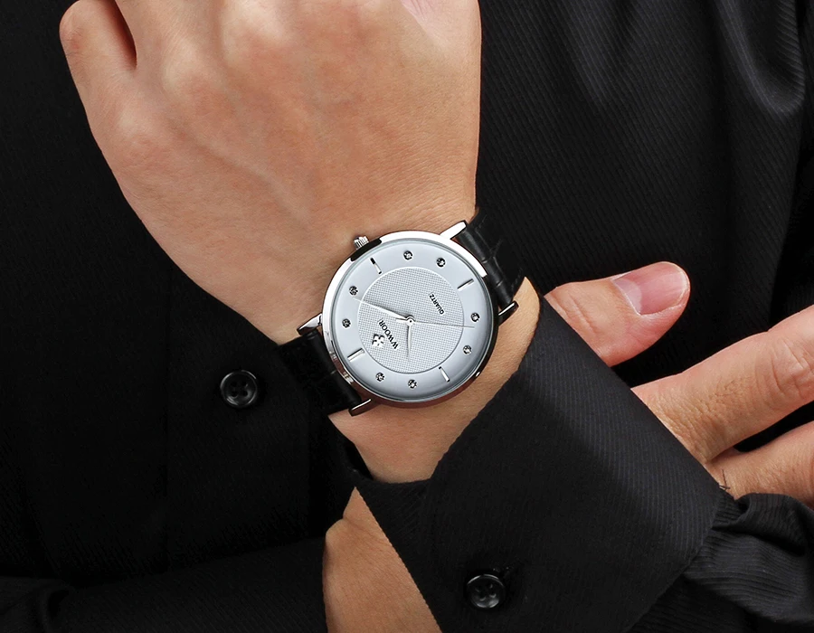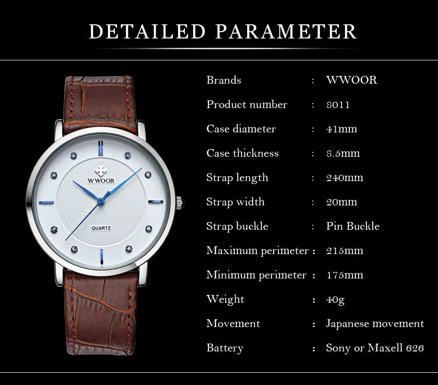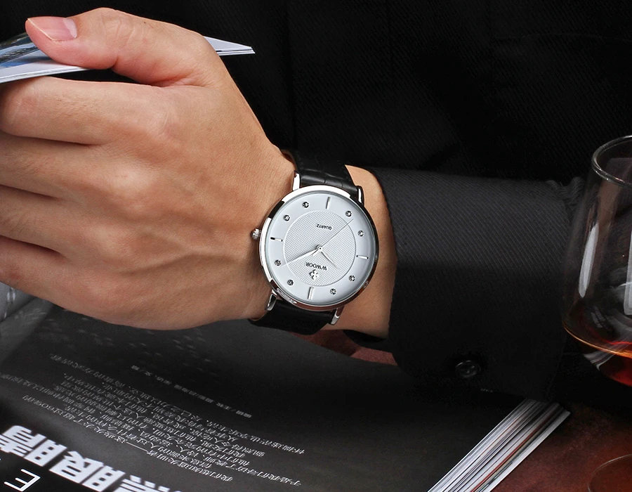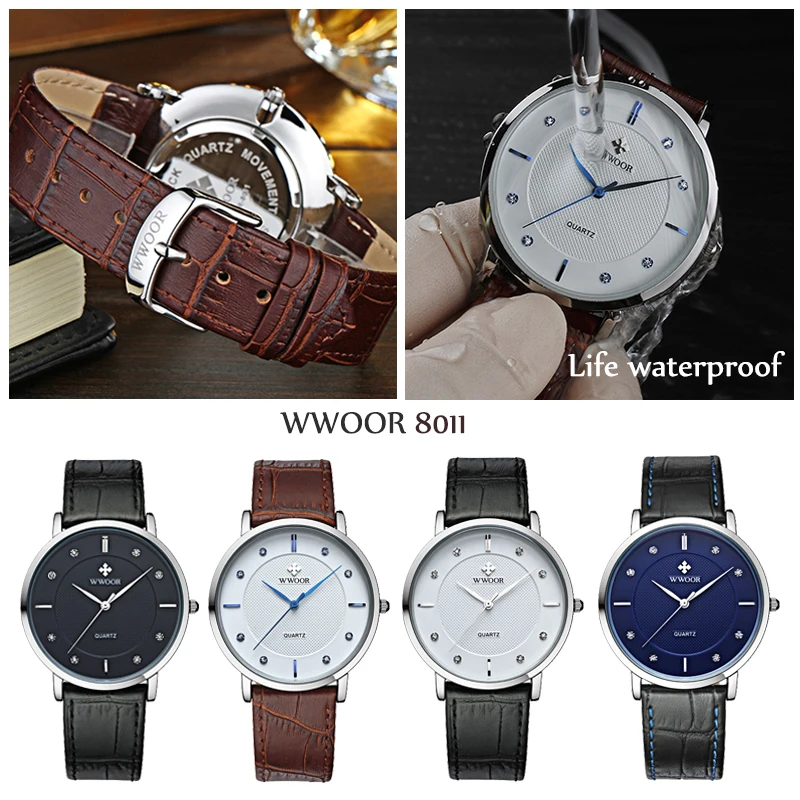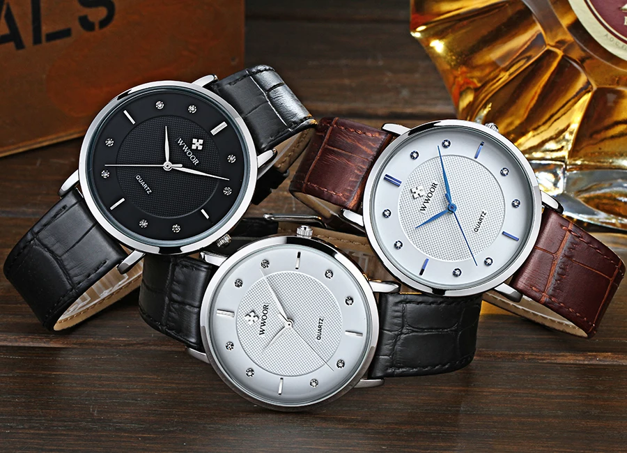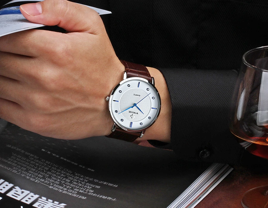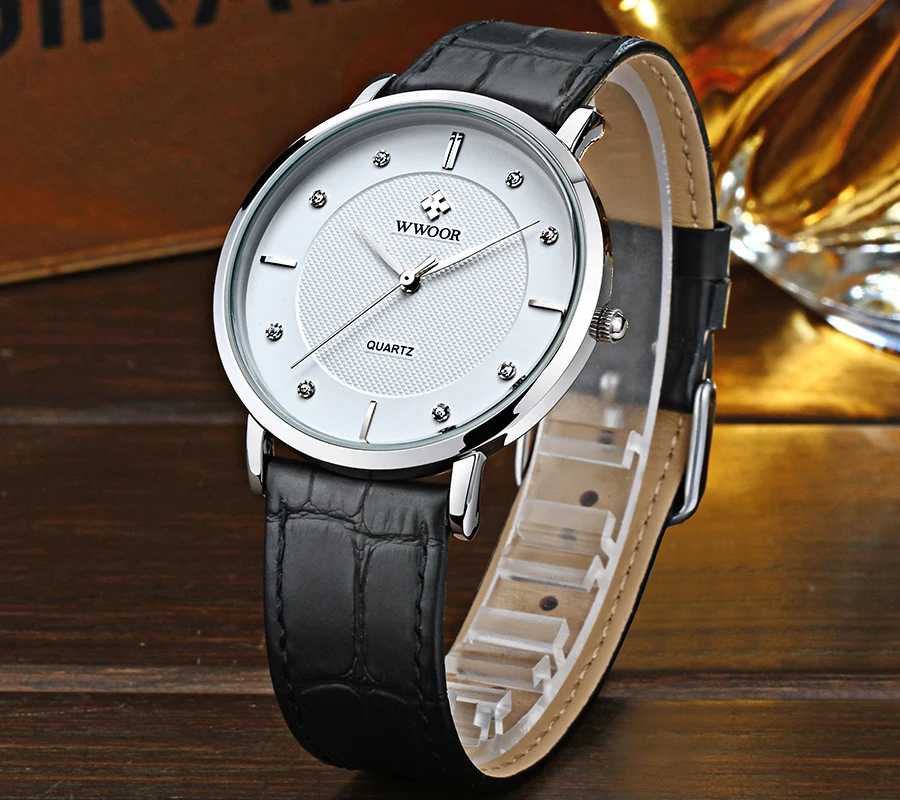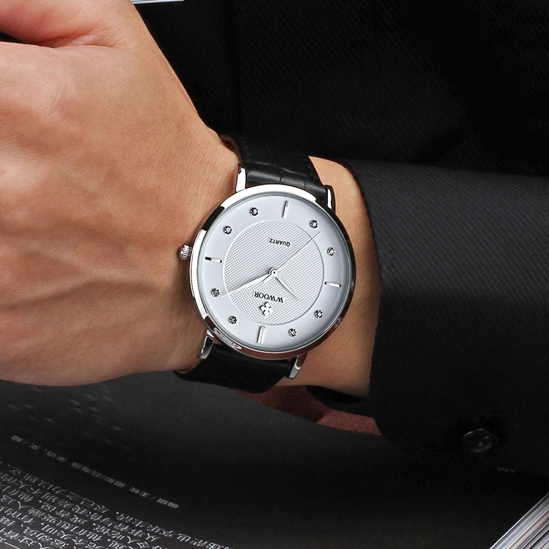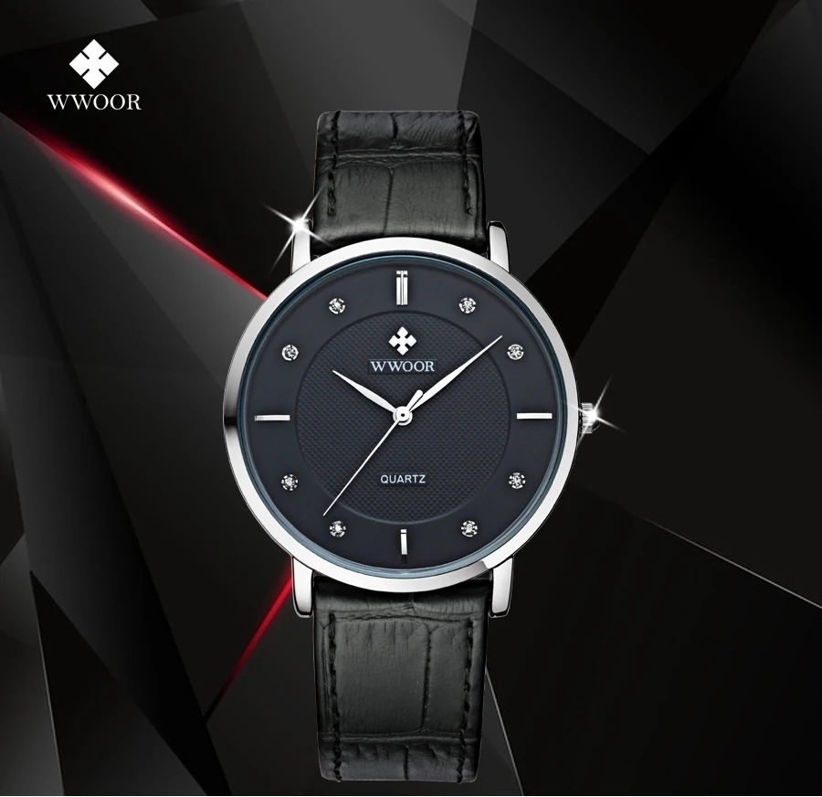Часы наручные WWOOR Мужские кварцевые ультра тонкие, брендовые Роскошные водонепроницаемые, с кожаным ремешком