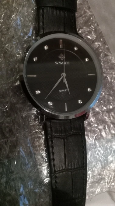 Часы пришли быстро, из недостатков- отсутствие коробки, и громкий механизм, также кожаным ремешком там близко и не пахло. Не видитесь на скидку в 92%, написано, что часы стоили 14 тысяч рублей, хотя на деле изначально стоили рублей так 300. Качеству часов за 14к не соответствуют. С виду китайская подделка на какой-нибудь известный бренд, но функцию часов выполняют и если не вглядываться то смотрится ничего так.