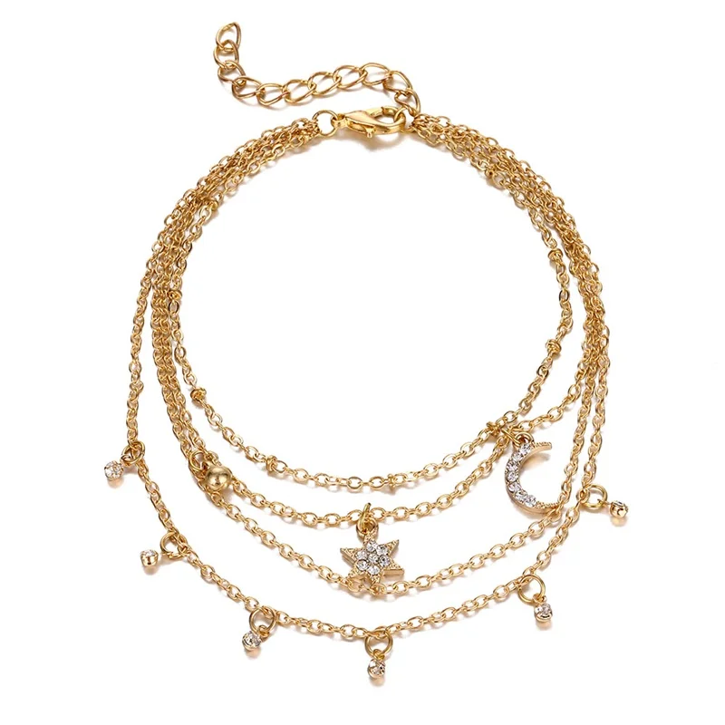 Женский браслет FNIO, золотой браслет с цепочкой на щиколотке, многослойный браслет на щиколотке с кристаллами, модные летние пляжные украшения для ног, 2020