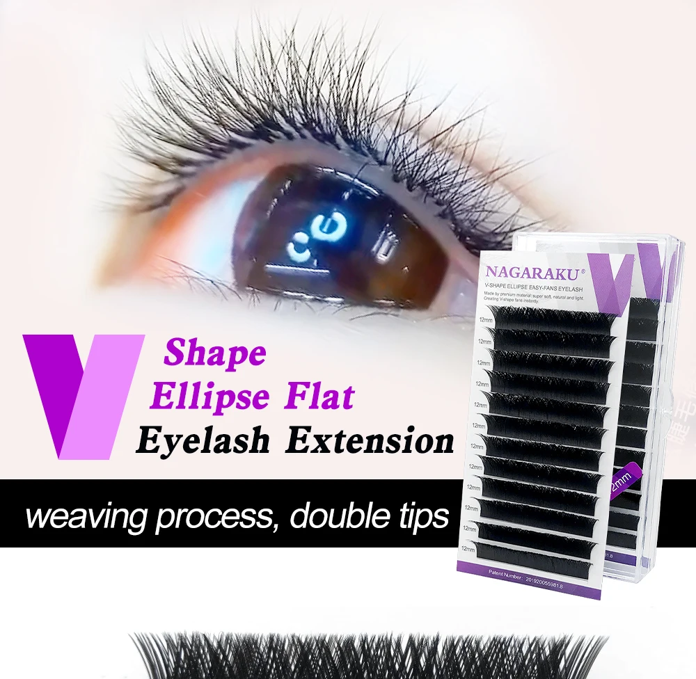 Ресницы для наращивания NAGARAKU, плоские, V-образные, для плетения, очень мягкие, натуральные
