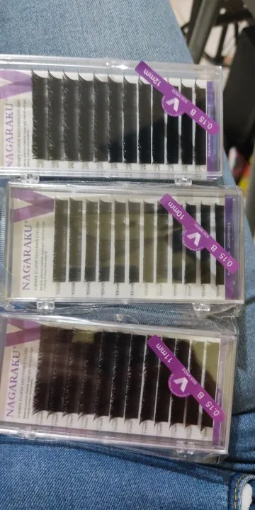 Os fios são bons. Porém 0,15. Eu prefiro fios mais finos. Mas são bons. Substitui bem fácil o cílios Y. Bem parecido. A base exige mais cuidado para tirar da fita