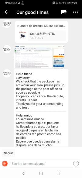 Компания не дает решения, к отправке сделано и не получено. Ненадежная компания ..... которая у меня есть Товар, если вы его не получили? Я не рекомендую покупать с ними Я провожу 10 евро и AliExpress не дает мне гарантии возврата на сегодняшний день