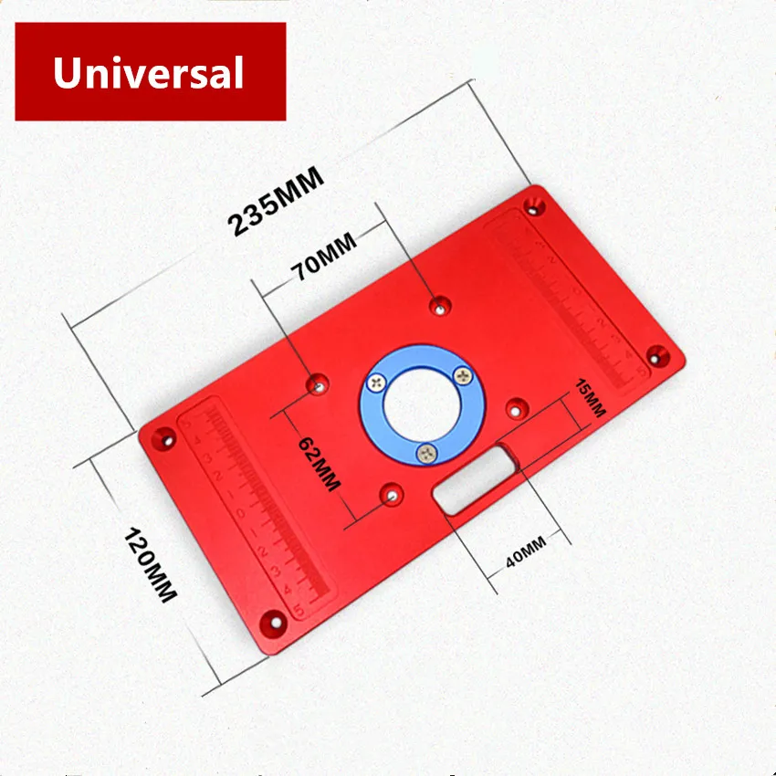 Особенности -Изготовлен из алюминиевого сплава, долговечен в использовании. -Удобная Втулка с центральным отверстием, используемая для выравнивания роутера, благодаря чему она центрируется в отверстие для бит. -Сделать аккуратно сверление и монтаж любого роутера легким. -Она проста в эксплуатации, экономит силы и труд, а также легко манипулировать и расширять использование Обрезной машины одновременно. Характеристики: Наименование: вставная пластина для фрезерного стола Модель: RT0700C/Универсальная Материал пластины: алюминиевый сплав Материал вставки кольца: ABS пластик Цвет: красный Размер: 240 мм * 120 мм * 7 мм/235 мм x 120 мм x 8 мм Посылка 1 x вставная пластина для фрезерного стола 1 x вставное кольцо