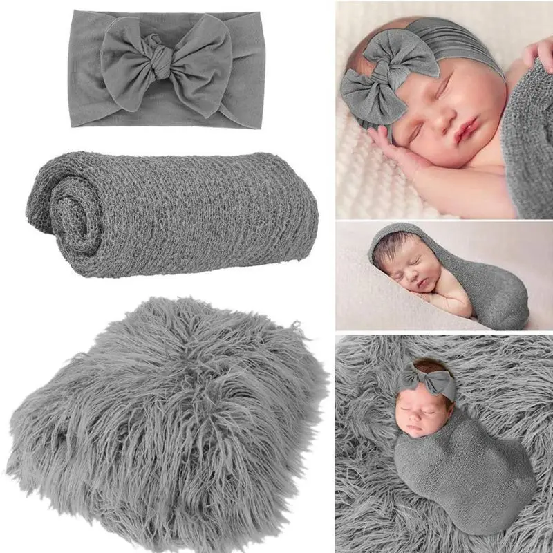3 шт., одеяла и повязка на голову для фотосъемки новорожденных