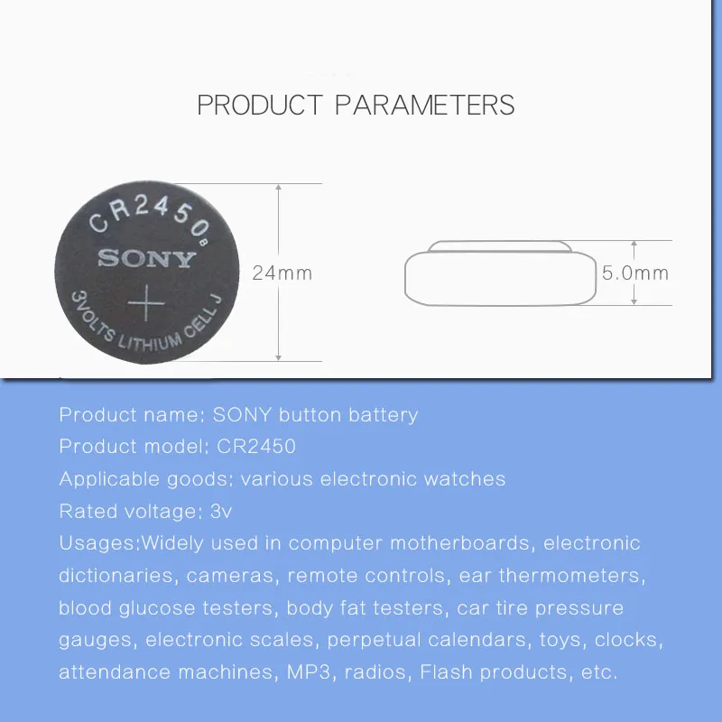 ОригиналSONY CR2450 кнопочный аккумулятор 3 в литиевые батареи CR 2450 для часов дистанционного управления игрушечным компьютером калькулятор