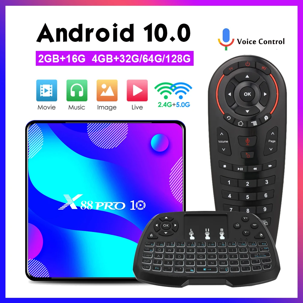 Приставка Смарт-ТВ X88 Pro, Android 10,0, 4K, 3D медиаплеер, 2,4 ГГцтелефон, двухдиапазонный, Wi-Fi, Bluetooth, ТВ-приемник RK3318, четырехъядерный процессор, верхняя приставка
