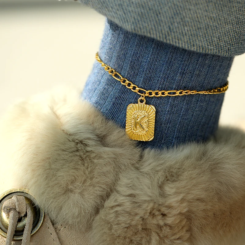 Геометрические Квадратные буквы ножные браслеты для женщин модные ювелирные изделия золотой цвет нержавеющая сталь буквы лодыжки браслет Аксессуары для ног