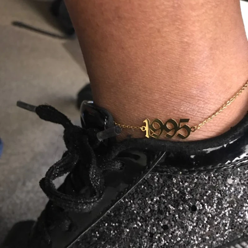 Браслеты на лодыжку для новорожденных на английском языке, цепочка для ног из нержавеющей стали, ювелирные изделия для ног, 1985, 1999, 2000, 2019