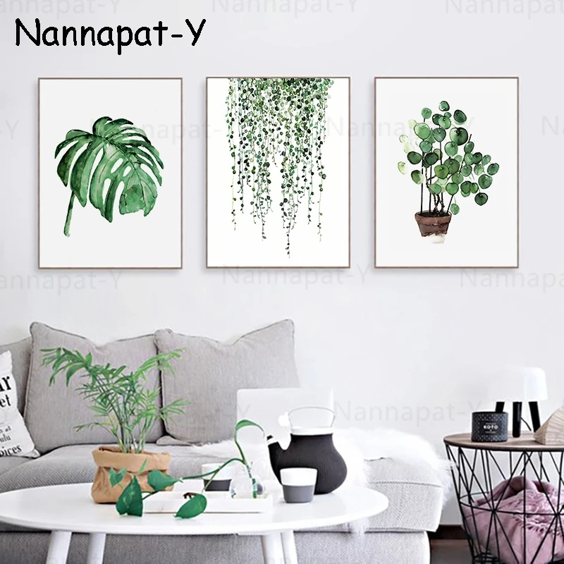 Постер с тропическими растениями в скандинавском стиле, украшение для дома, декоративная картина с зелеными листьями в скандинавском стиле, современная настенная Картина на холсте