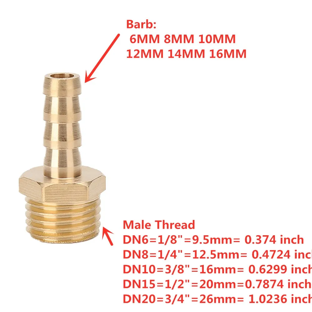 Латунный фитинг для труб 6 мм, 8 мм, 10 мм, 12 мм, 14 мм, 16 мм, 19 мм, хвостовой зазубрин для шланга 12 дюйма, Штекерный разъем BSP, медный переходник для соединения