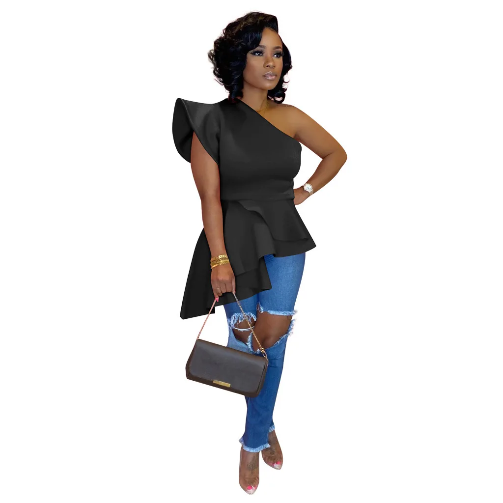Женская Асимметричная блузка с открытыми плечами, топы с оборками, модная Клубная одежда для свиданий, вечерняя размера плюс, африканская блузка