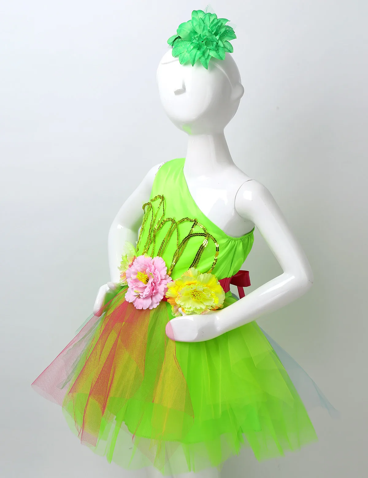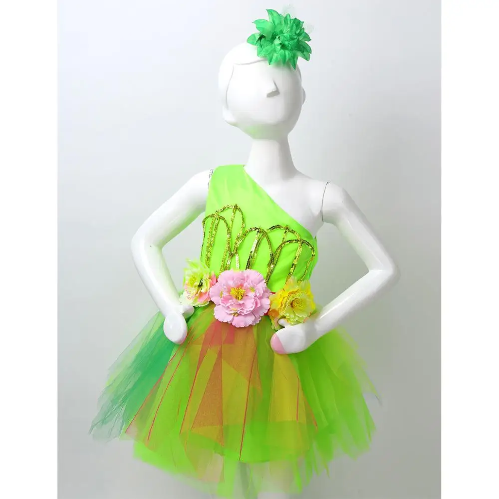 Джазовая танцевальная одежда для девочек, Детский костюм для латиноамериканских танцев, цветочный костюм для сальсы с заколкой для волос