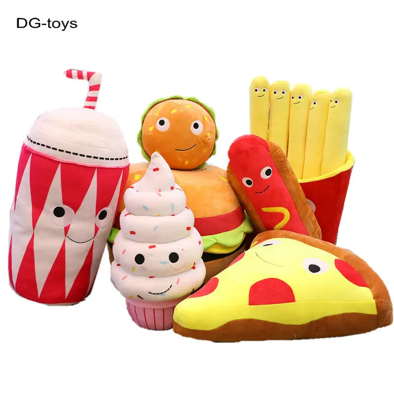 Плюшевые игрушки для гамбургеров, пиццы, мороженого, картофеля фри, мягкие игрушки для фаст-фуда, попкорна, торта, пиццы, подушки, детские игрушки, подарок на день рождения