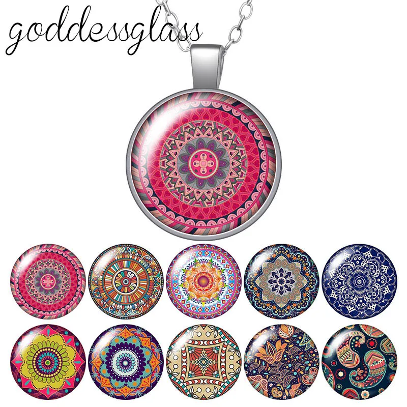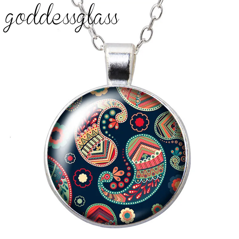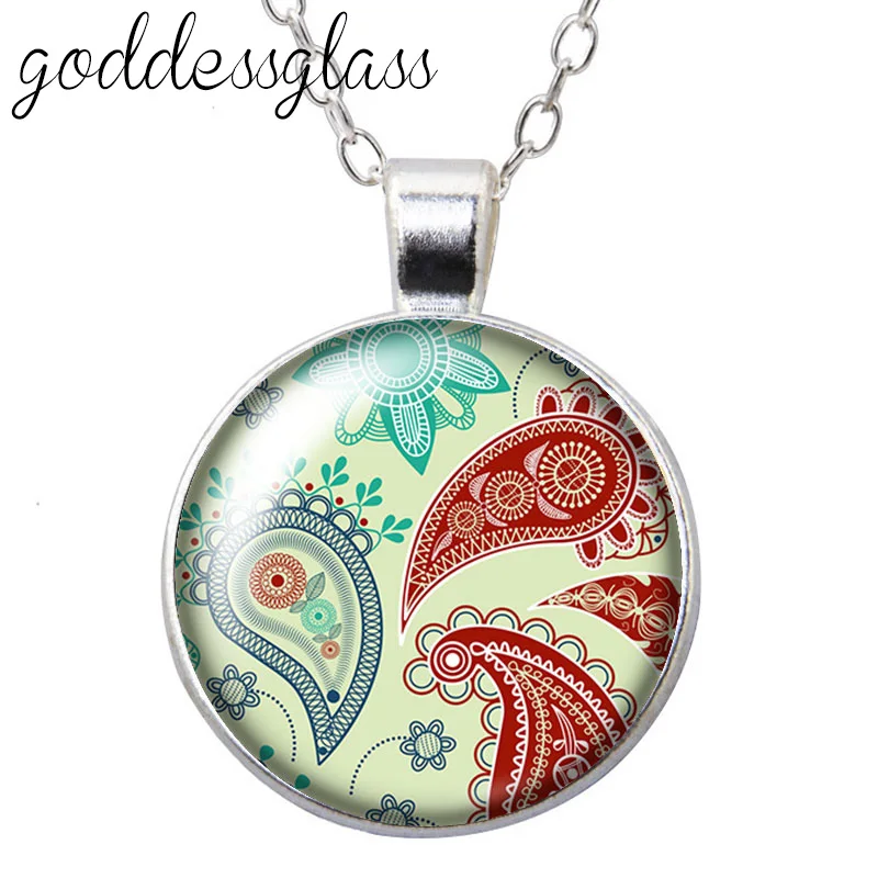 Красивые узоры, круглый стеклянный кабошон, посеребренныйхрустальный кулон, ожерелье, ювелирные изделия для подарка