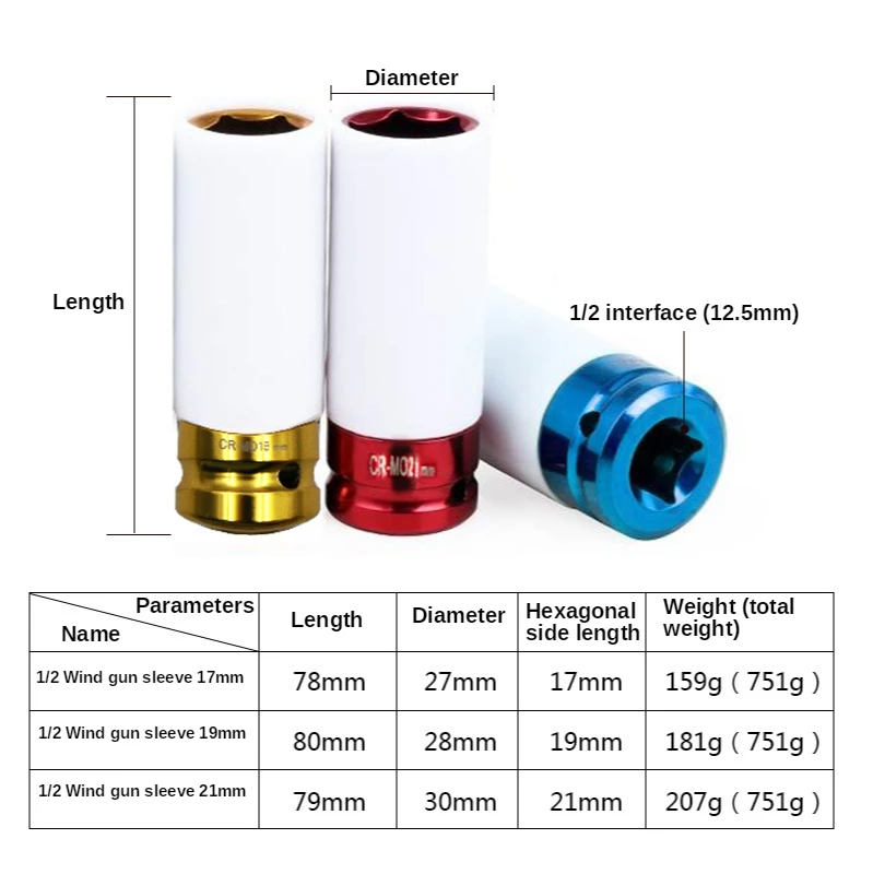 Прочные автомобильные запчасти, 3 шт., 171921 мм, Защитные муфты для автомобильных шин, настенная глубокая ударная гайка, гнездо для колеса из сплава, 12, рукав для авторемонта