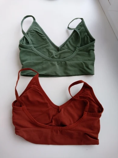 Стильные бюсты. Для занятий спортом и повседневной носки подойдут идеально. Вкладыши для груди съёмные. Спина в топе выглядит очень красиво. Комфортно в них!) На грудь 83 подошли отлично! Думаю, для бОльшей груди или талии будут неудобные.