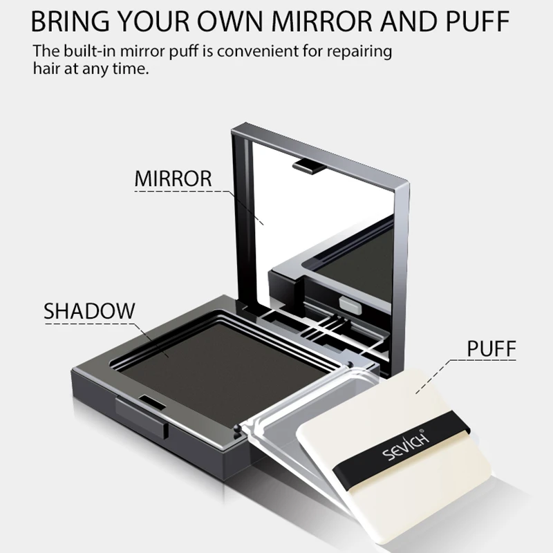 Параметры: 12г Цвет: черный, кофейный, темно-коричневый Sevich 12 г Тени для волос fiberuse для консилера корня, маленький и светильник с Порошковым слоем, легко носить с собой и использовать. Подходит для всех мест и качества волос.