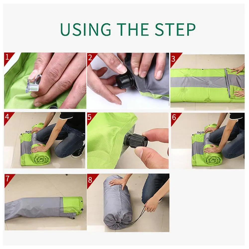 Пулевые точки:1. Портативное хранение: надувной матрас поставляется с тканевой сумкой для хранения, он маленький и легкий после хранения, легко носить с собой.2. Быстрое автоматическое надувание: расправьте воздушную подушку, откройте воздушное сопло, оно автоматически надуется, просто вручную надуйте подушку и крылья. Подушка обеспечивает вам качественный сон каждый раз, когда вы путешествуете.3. Удобный материал: используется полиэфирная ткань pongee, экологически чистый материал, коврик для сна Гладкий по поверхности, износостойкий и легко стирается, водонепроницаемый и дышащий. Внутренняя сердцевина выполнена из высококачественного эластичного хлопка, отборного спонжа высокой плотности, комфортного и поддерживающего.4. Складное Использование: полностью развернуто (для 2-3 человек), укладывается пополам (для одного человека), различные варианты, размер разворота: около 188*130 см. Можно расслабить ноги и спать.