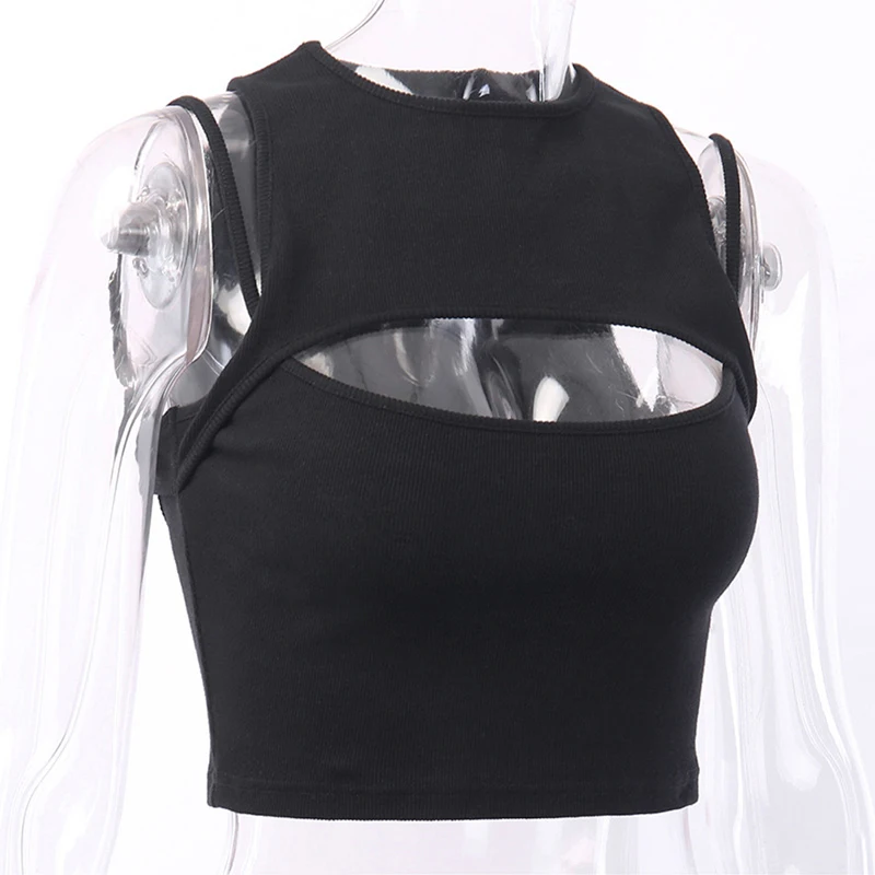 2021 сексуальный укороченный топ с вырезами, женская летняя модная сексуальная повседневная короткая футболка без рукавов, укороченный топ, жилет, майка на бретелях, блузка