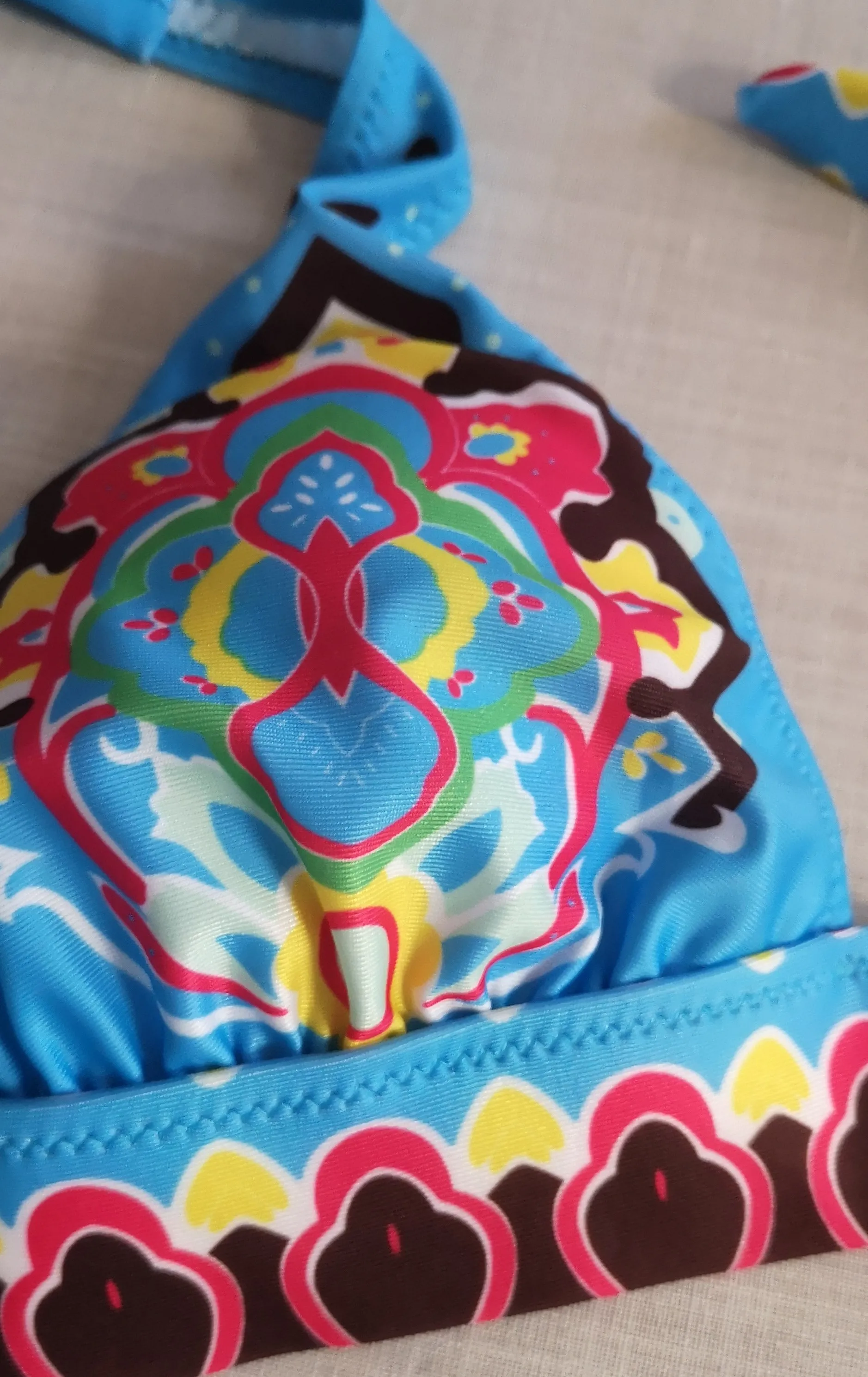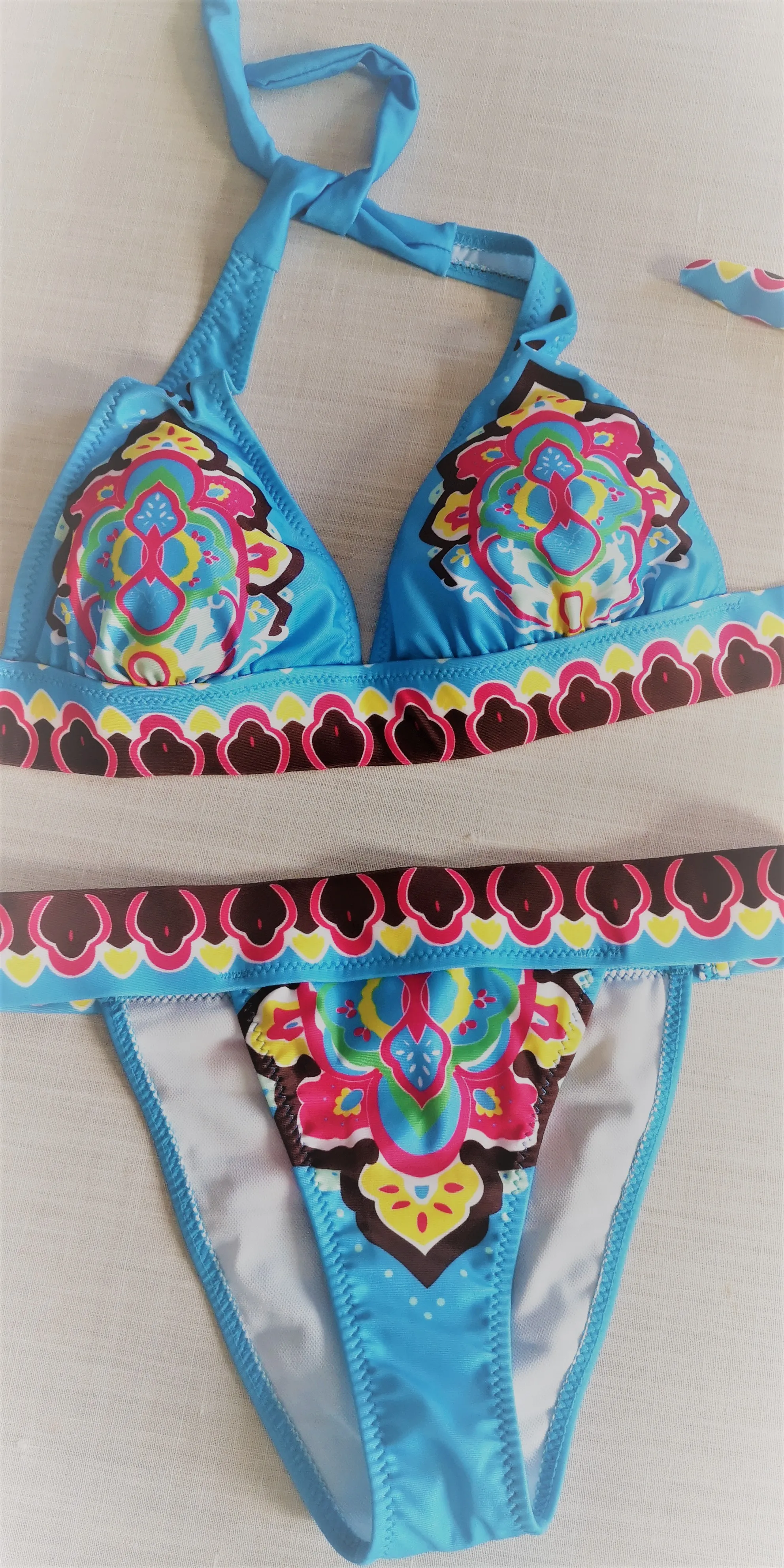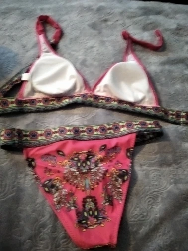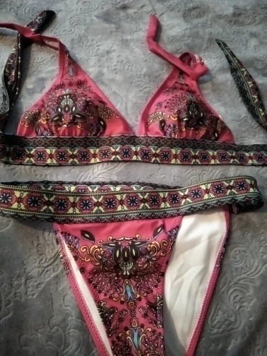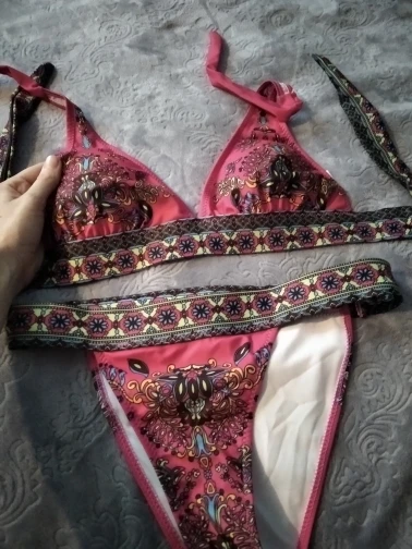 Бикини неплохое, но отпечаток не такой, как на картинке, ни цвет. Качество хорошее, ткань толстая. Размер правильный, я использую 38, я заказал м, и это выглядит хорошо.