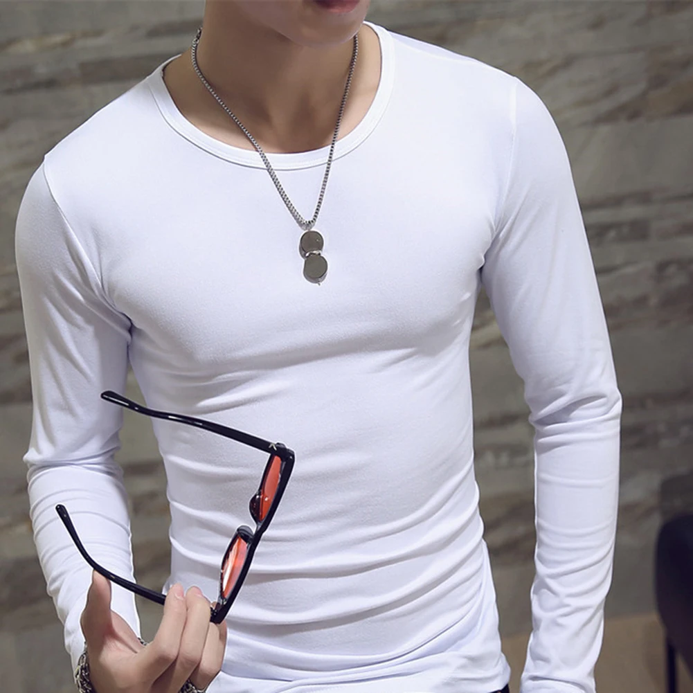 Повседневная мужская однотонная облегающая футболка с круглым вырезом и длинным рукавом, спортивный джемпер